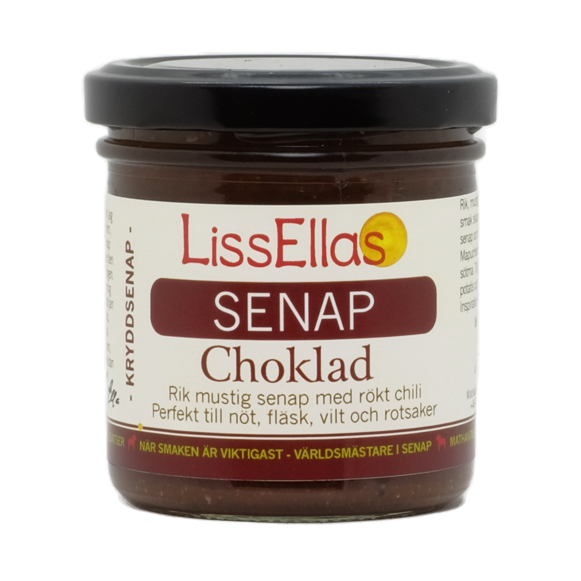 Chokladsenap smaksatt med merquén som är rökt chili tillsammans med koriander enligt gammal indiantradition i Chile. God till kyckling, korvar, fläsk även god till rostad potatis.