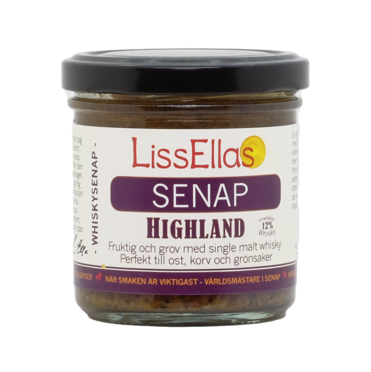 Ingredienser: Senapsfrö, socker, vatten, vinäger, whisky (12%), havssalt.