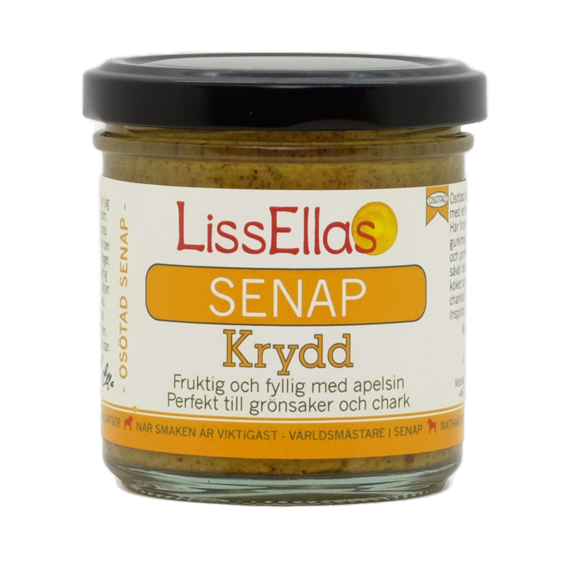 Osötad kryddig senap med en fruktig smak. Här finns apelsin, gurkmeja, svartpeppar och pomerans. Bra till såväl det vegetariska köket som till charktallriken.