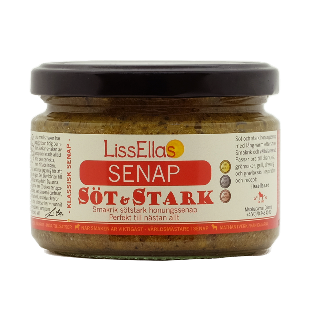 Söt och stark honungssenap med lång varm eftersmak. Smakrik och välbalanserad. Passar bra till chark, ost, grönsaker, grill, dressing och gravlaxsås.