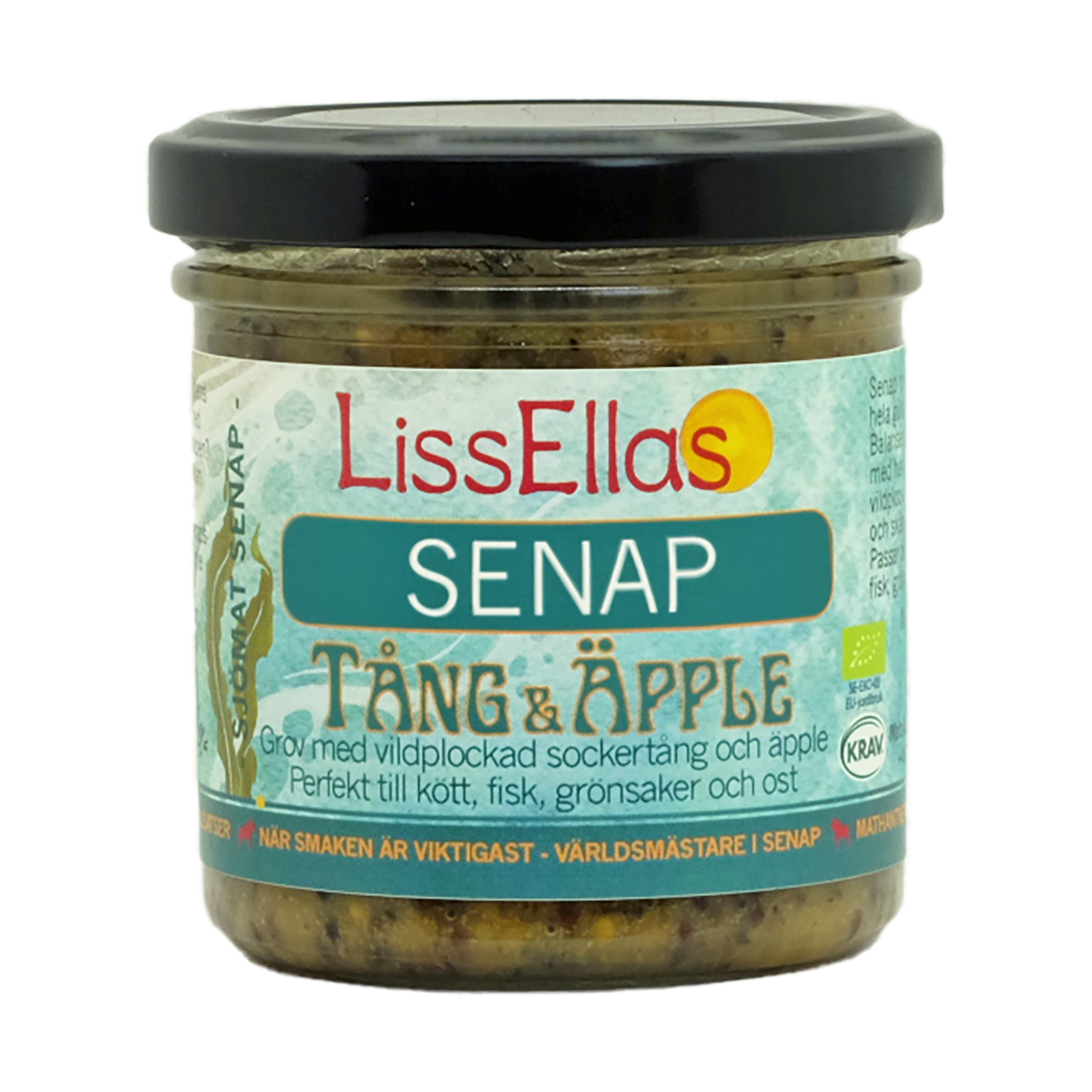 Senap med inslag av hela gula och bruna frön. Balanserad fruktig smak med härliga bitar av vildplockad sockertång och skånska äpplen. Passar bl.a. till burgare, fisk, grönsaker, pommes.